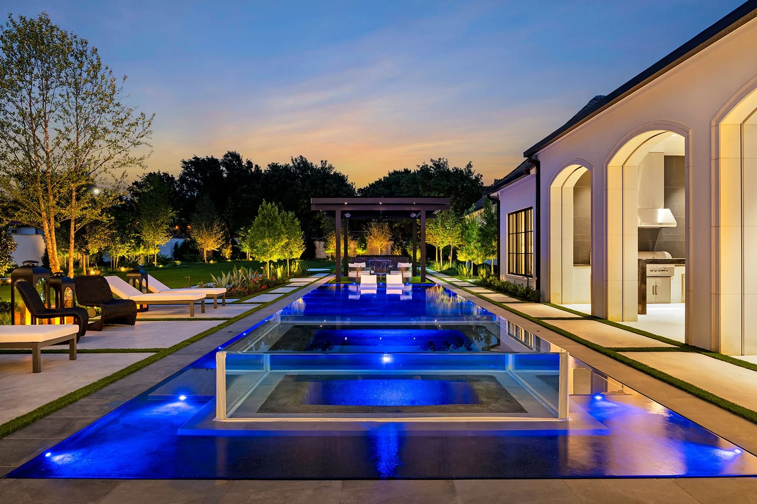 • The Goal: By lighting a distant tree or wall (the background) more intensely than the immediate patio (the foreground), the designer prevents the “black wall” effect, where windows act as mirrors at night. It creates a sense of infinite space.